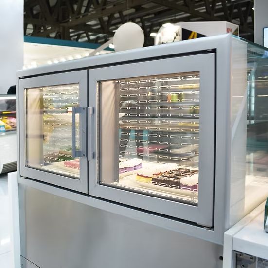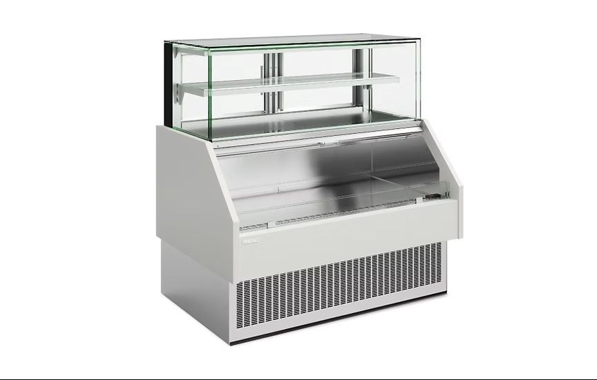A compact 2-in-1 display unit that maximizes the available display area. This innovative unit combines two compartments, either refrigerated or a combination of refrigerated and heated, enabling the sale of both self-service and assisted service products within a single cabinet. Despite its small footprint, it offers a spacious display area for showcasing a variety of items.