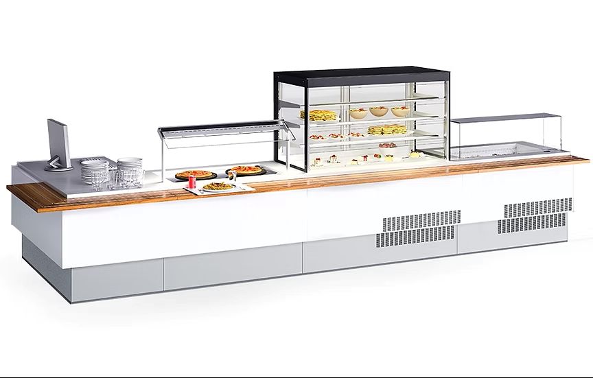Fresco is a versatile and flexible solution that adjusts to the needs of each business, allowing the combination of refrigerated, dry/ambient and heated displays, for assisted service, self-service or both, in the most varied versions, either with or without refrigerated or heated storage: