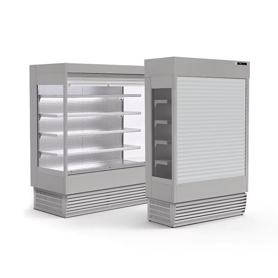 UNITED multidecks are ideal for promoting and selling your packaged food products. Their efficient ventilated refrigeration system, featuring an optimized air curtain, maintains a consistent temperature throughout the unit. With 5 high-capacity display levels, these multidecks can hold a significant amount of food and are designed for easy restocking.