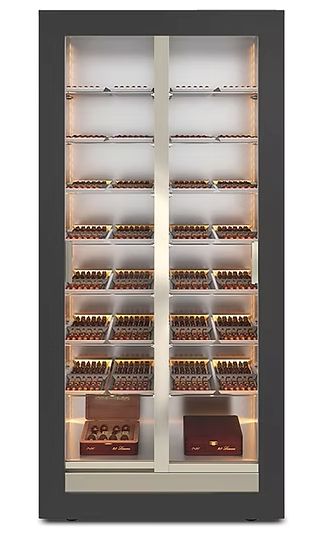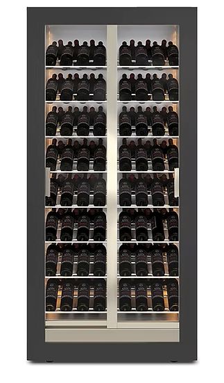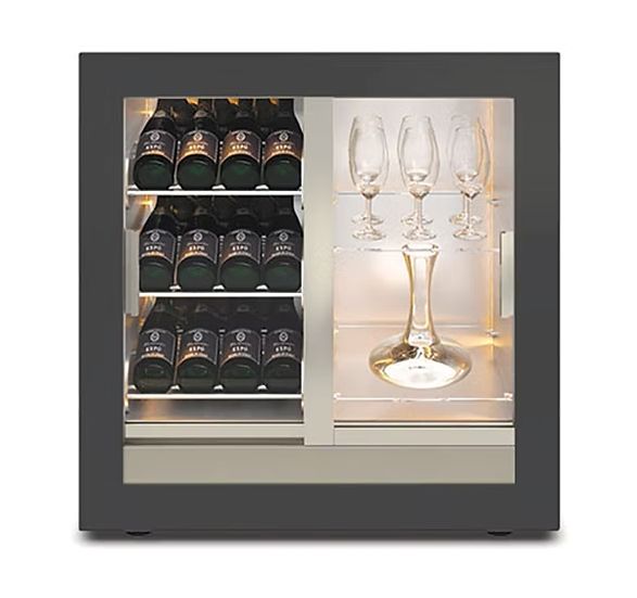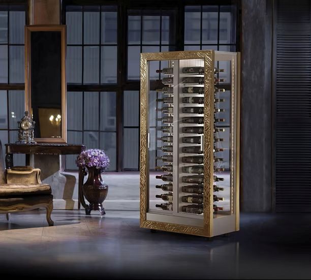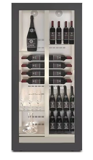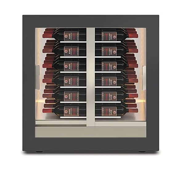 A revolution in applied thermodynamics. The first refrigerator in the world with an evaporation coil in the middle of the refrigerated compartment, a perfect thermal balance. The evaporator becomes a support. All bottles are at the same distance from the source of cold. An insight that paved the way to a new concept in design and construction, adding value to new volumes and creating unexpected transparencies