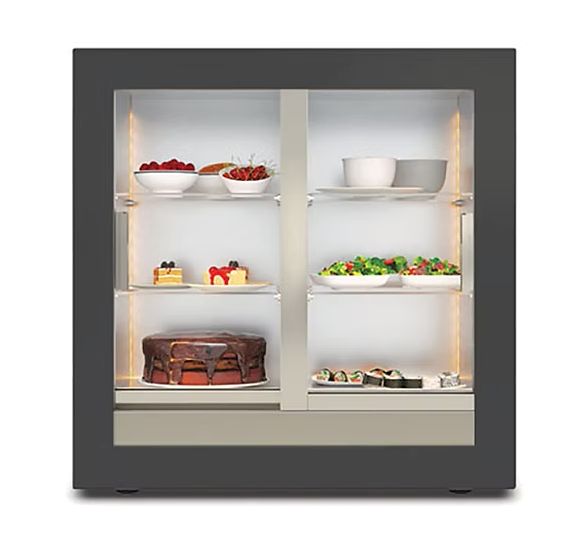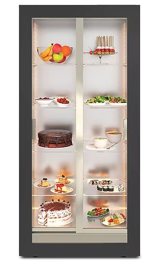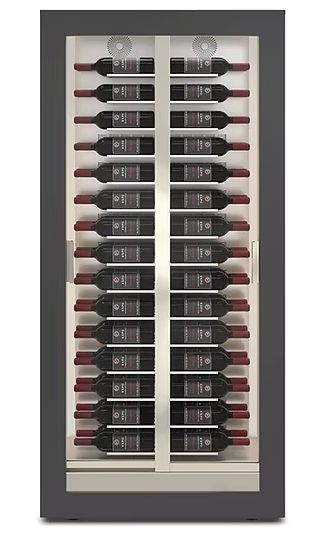 Teca features a wooden-clad aluminum structure that comes in different colors and finishes. This design choice allows for easy replacement both of glass parts and the wood frame. Teca is available with reduced depth (H) with static condenser installed in the back, and standard depth (M / C) equipped with the innovative central refrigeration system with the cooling coil in the middle of the cabinet. This system makes it possible to have a central (C) system with sliding doors on both sides.